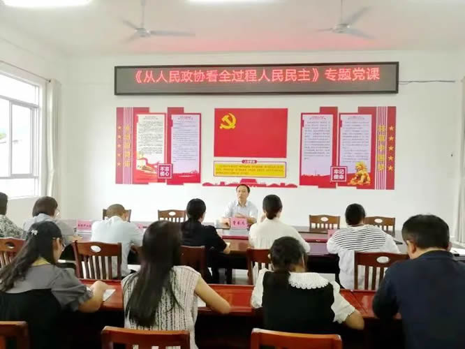 9月11日,市政协副主席曹垂龙到挂点联系党支部——蒙山县西河镇水秀小学党支部,为党员教职工上专题党课,并围绕如何办好人民满意教育开展协商交流。(李雪玲)