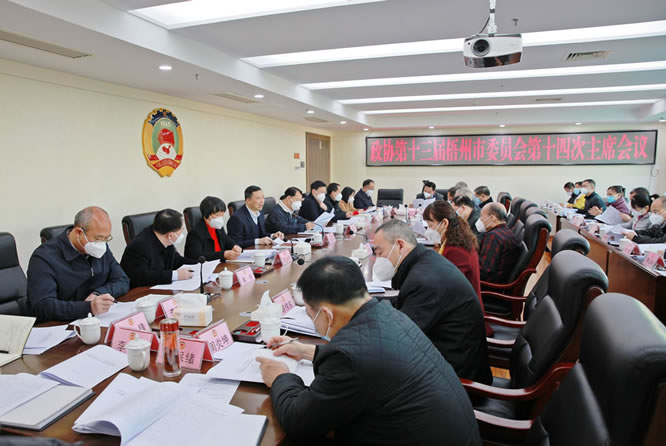1月19日,市政协主席黄振饶主持召开政协第十三届梧州市委员会第十四次主席会议,学习贯彻习近平总书记二〇二三年新年贺词和在全国政协新年茶话会上的重要讲话精神,学习贯彻二十届中央纪委二次全会、自治区纪委十二届三次全会精神,传达学习自治区两会精神,研究部署近期工作,对市政协十三届三次会议筹备和春节期间安全等工作提出要求。