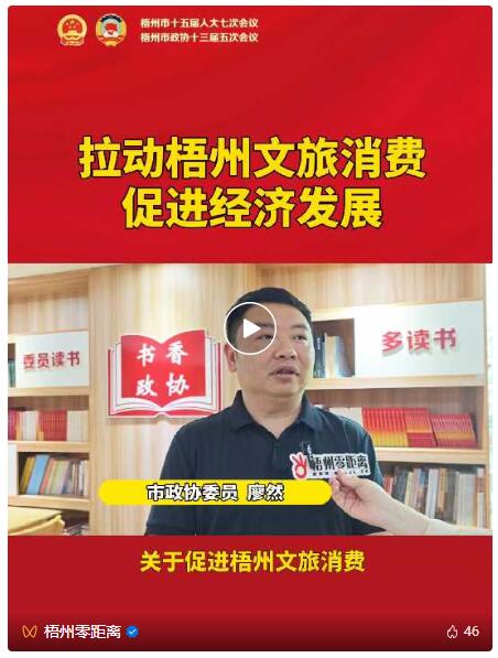市政协委员廖然此次向大会提交了《关于拉动梧州文旅消费促进经济发展的建议》的提案,他建议,相关部门应该依托我市优越的地理位置,强化顶层设计,加大推广力度,深入挖掘岭南文化、早茶文化等文旅特色,打造更多消费场景;健全“赛事+文旅”深度融合发展机制,推动相关产业强链补链,完善办赛条件,促进特色品牌赛事创建与城市发展深度融合。