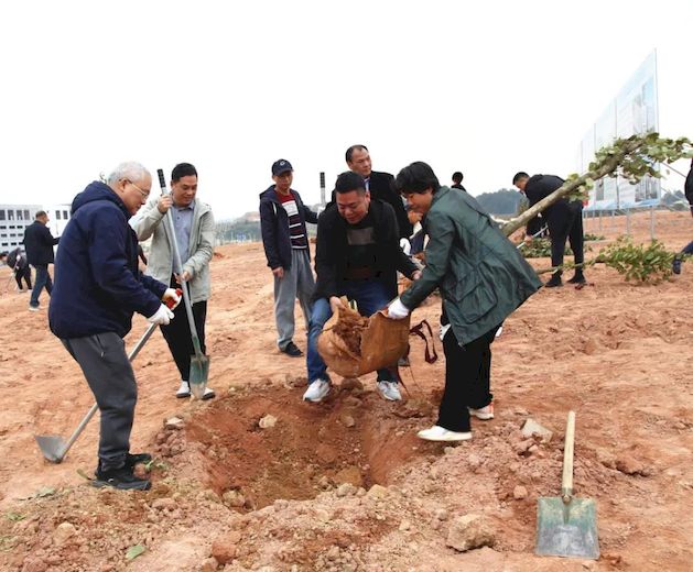 3月18日,长洲区政协机关党支部等5家单位党组织到龙新珠宝首饰产业园开展“党建引领 委员行动 我为园区添绿植”义务植树活动。(李静)